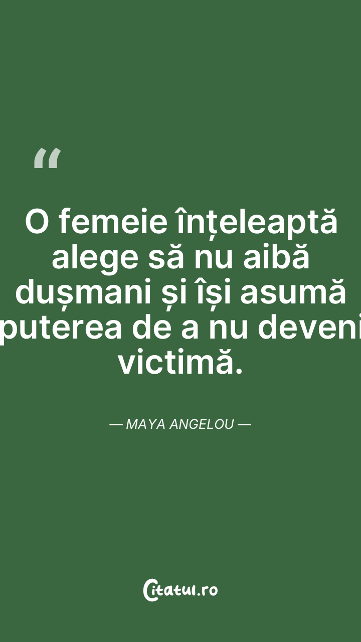 O femeie înțeleaptă alege să nu aibă dușmani și își asumă puterea de a nu deveni victimă. Maya Angelou