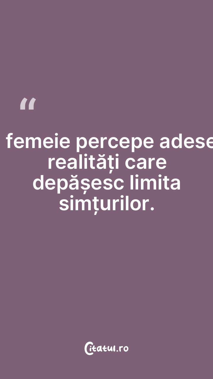 O femeie percepe adesea realități care depășesc li...