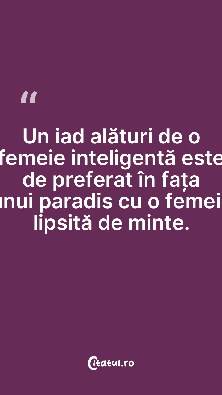 Un iad alături de o femeie inteligentă este de preferat în fața unui paradis cu o femeie lipsită de minte.