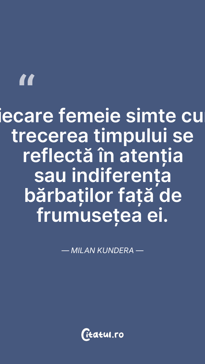 Fiecare femeie simte cum trecerea timpului se reflectă în atenția sau indiferența bărbaților față de frumusețea ei. Milan Kundera