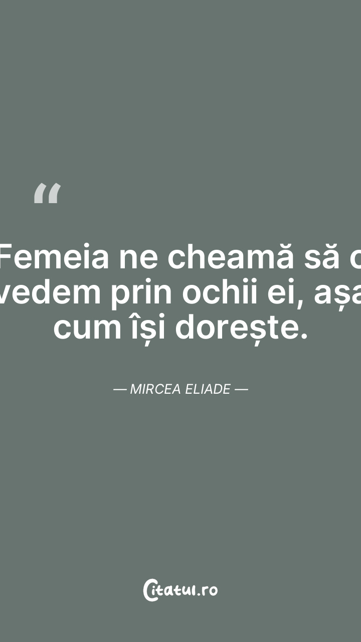 Femeia ne cheamă să o vedem prin ochii ei, așa cum își dorește. Mircea Eliade