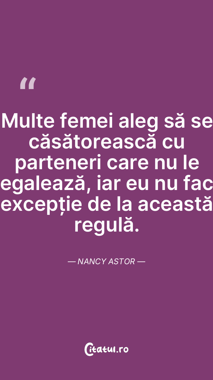 Multe femei aleg să se căsătorească cu parteneri care nu le egalează, iar eu nu fac excepție de la această regulă. Nancy Astor