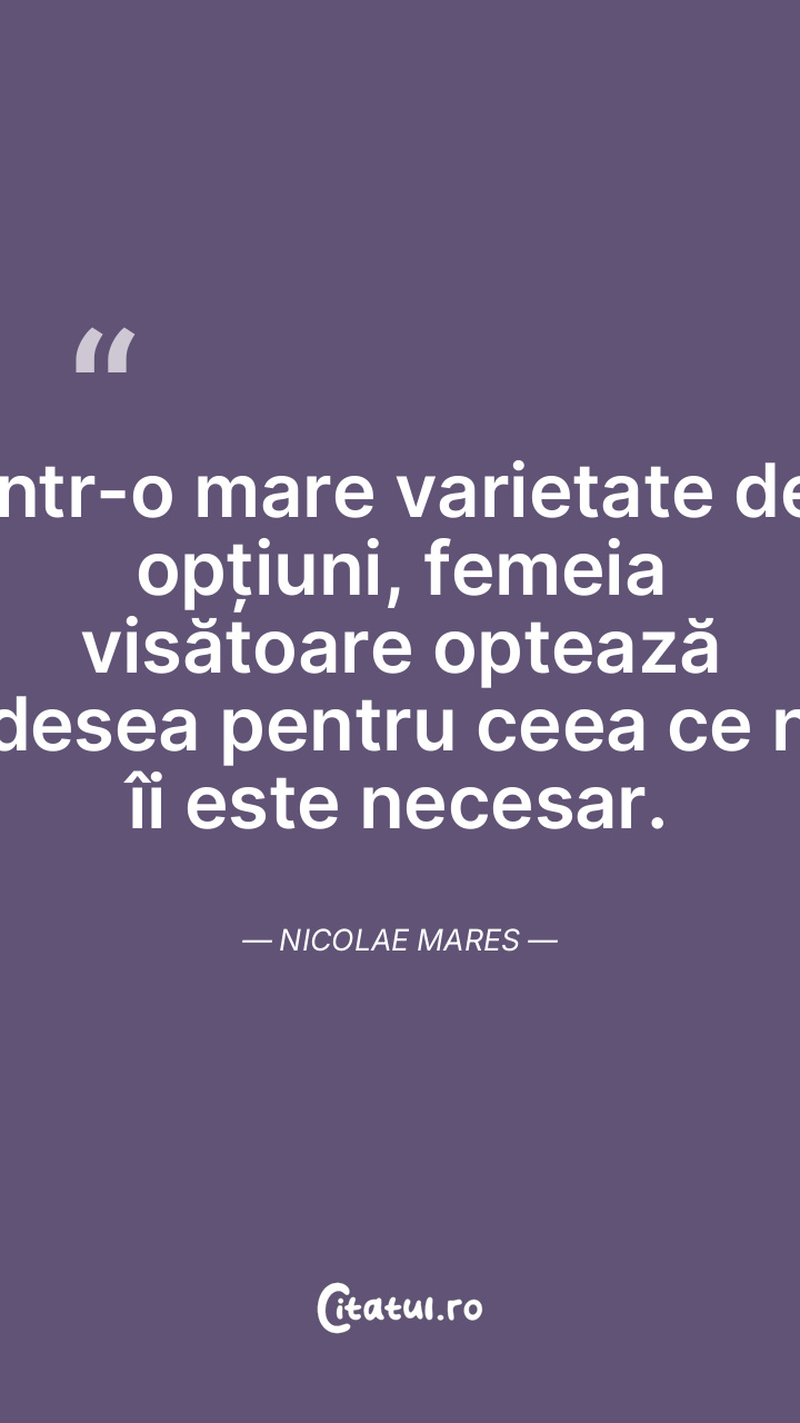 Într-o mare varietate de opțiuni, femeia visătoare optează adesea pentru ceea ce nu îi este necesar. Nicolae Mares