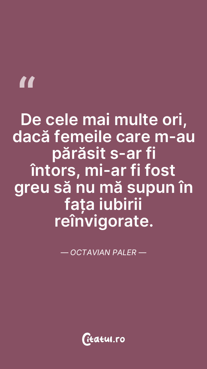 De cele mai multe ori, dacă femeile care m-au părăsit s-ar fi întors, mi-ar fi fost greu să nu mă supun în fața iubirii reînvigorate. Octavian Paler