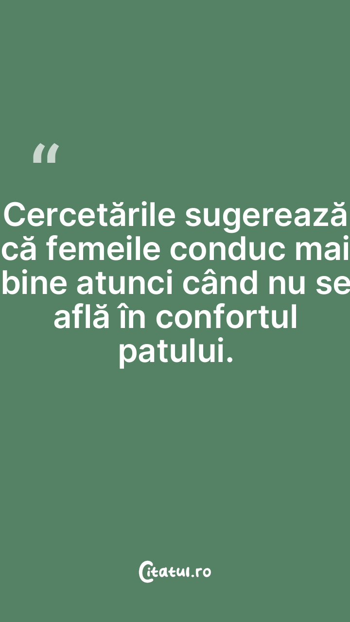 Cercetările sugerează că femeile conduc mai bine atunci când nu se află în confortul patului.