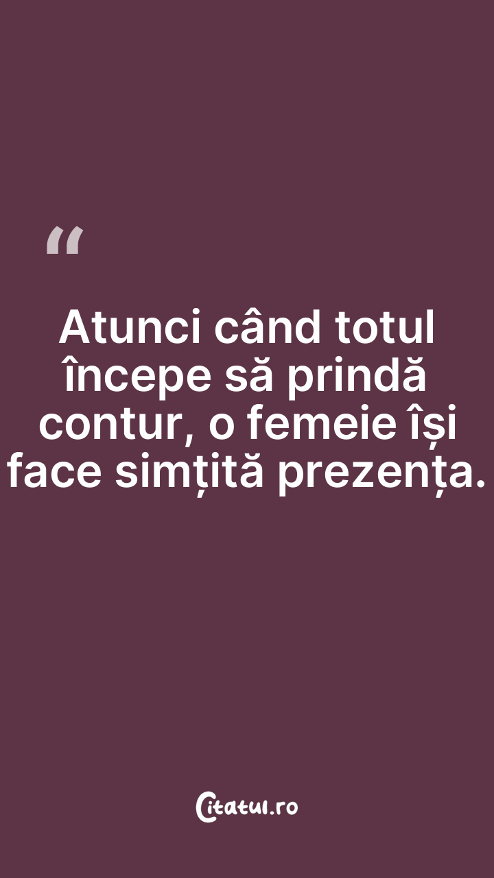 Atunci când totul începe să prindă contur, o femeie își face simțită prezența.