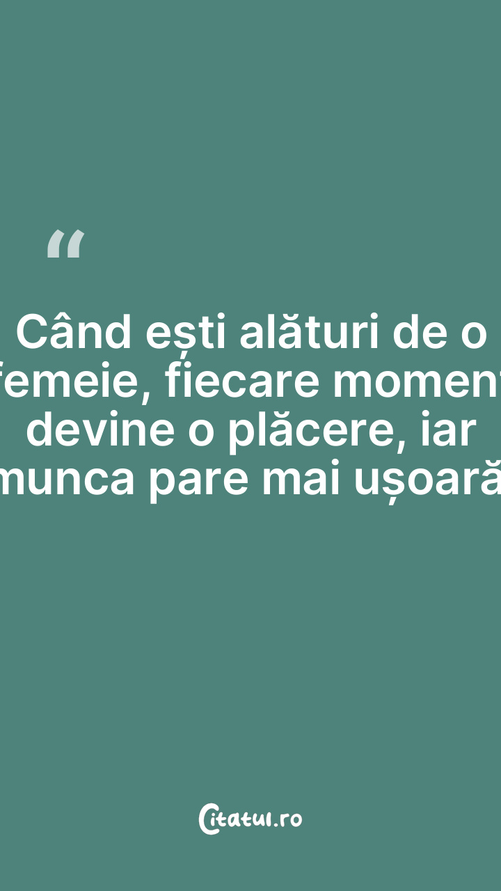 Când ești alături de o femeie, fiecare moment devine o plăcere, iar munca pare mai ușoară.