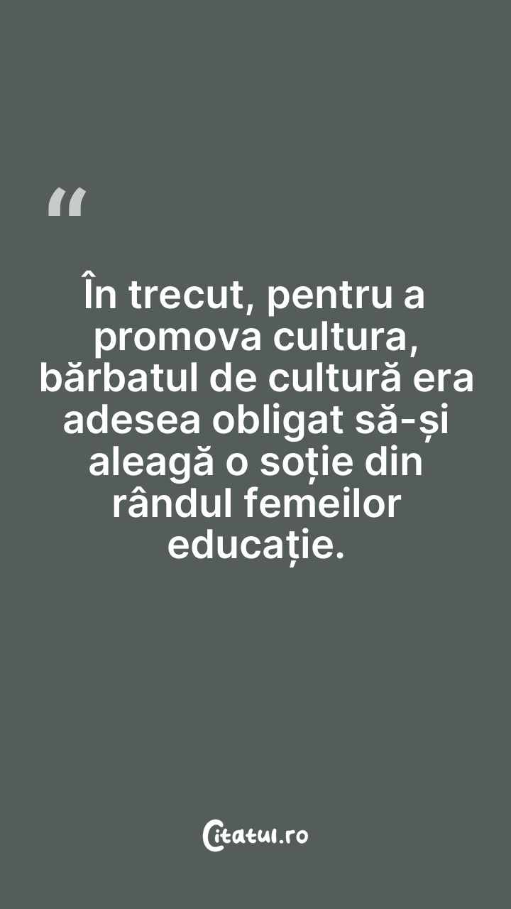 În trecut, pentru a promova cultura, bărbatul de cultură era adesea obligat să-și aleagă o soție din rândul femeilor educație.