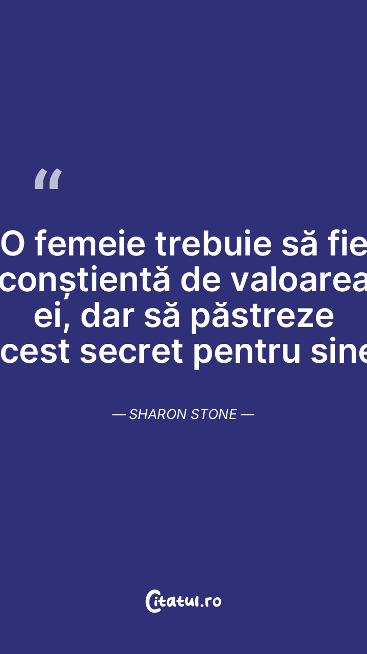O femeie trebuie să fie conștientă de valoarea ei, dar să păstreze acest secret pentru sine. Sharon Stone