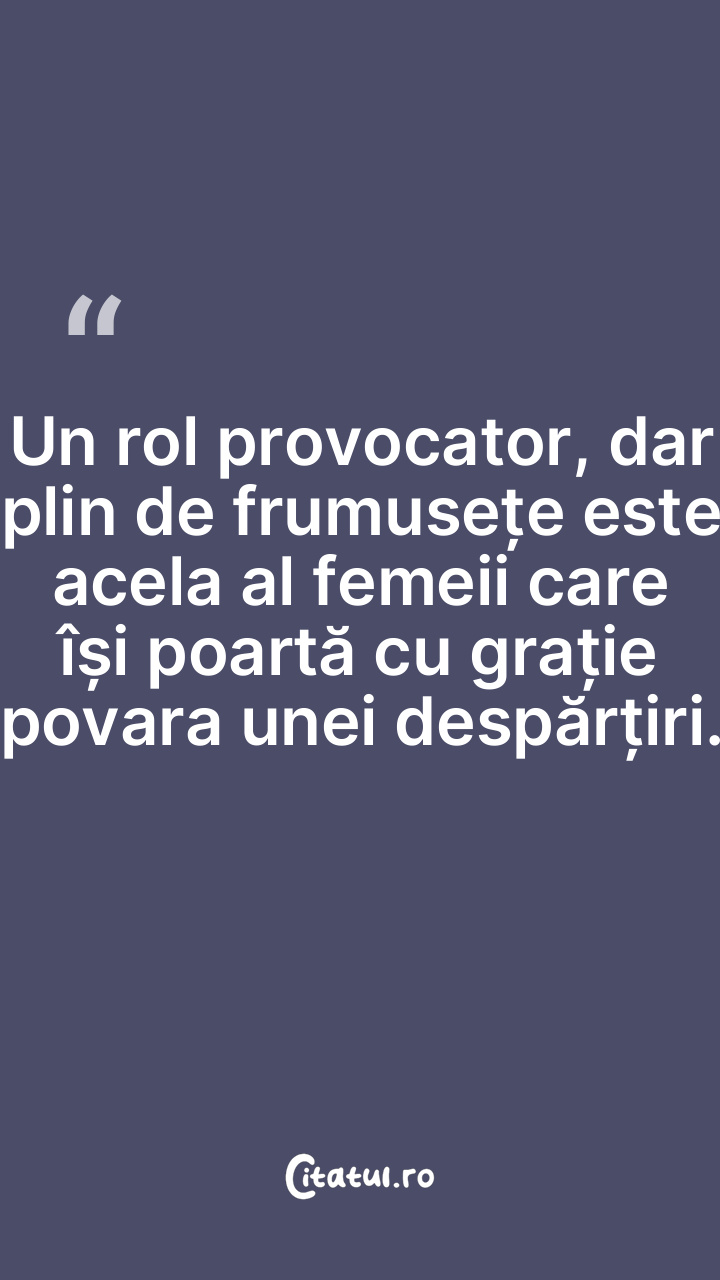 Un rol provocator, dar plin de frumusețe este acela al femeii care își poartă cu grație povara unei despărțiri.