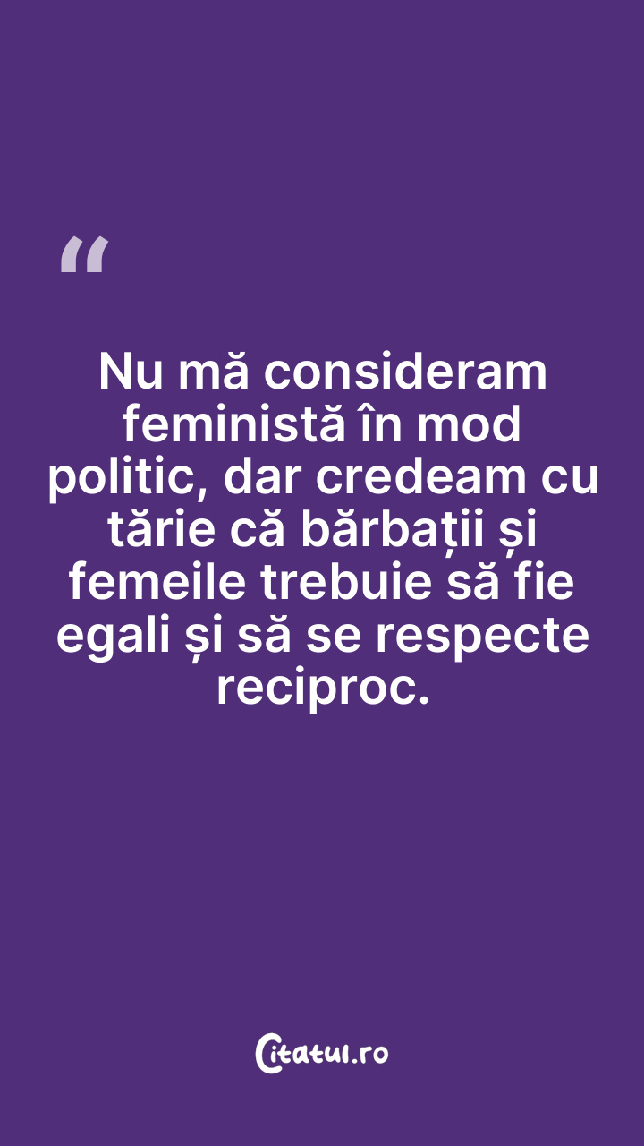Nu mă consideram feministă în mod politic, dar cre...