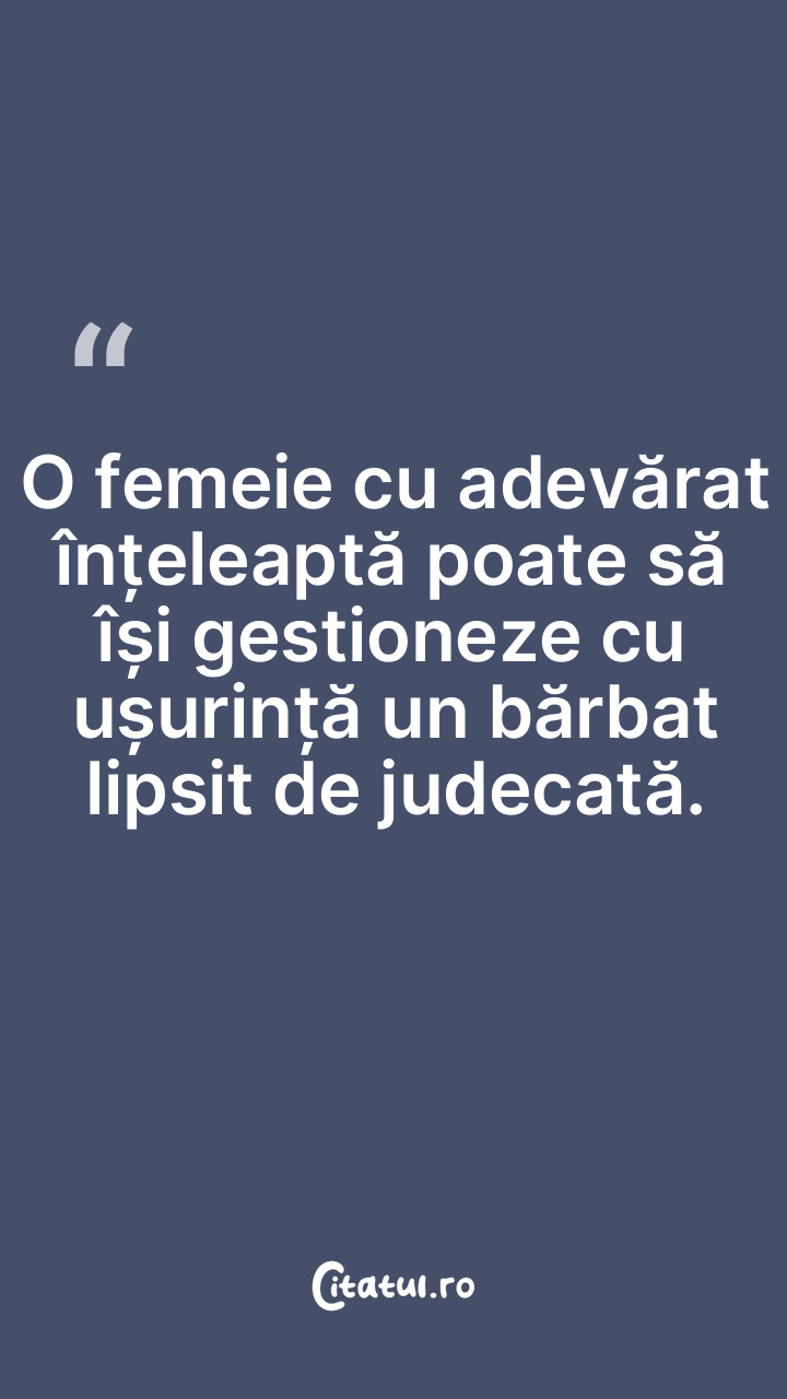 O femeie cu adevărat înțeleaptă poate să își gestioneze cu ușurință un bărbat lipsit de judecată.