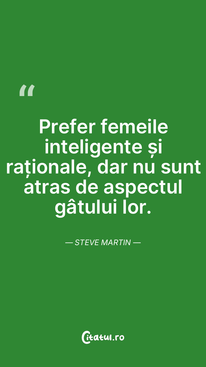 Prefer femeile inteligente și raționale, dar nu sunt atras de aspectul gâtului lor. Steve Martin