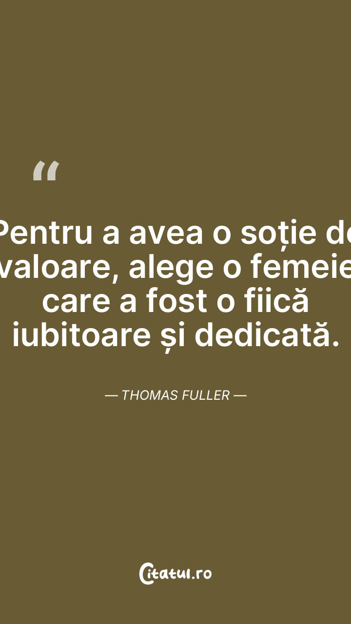 Pentru a avea o soție de valoare, alege o femeie care a fost o fiică iubitoare și dedicată. Thomas Fuller