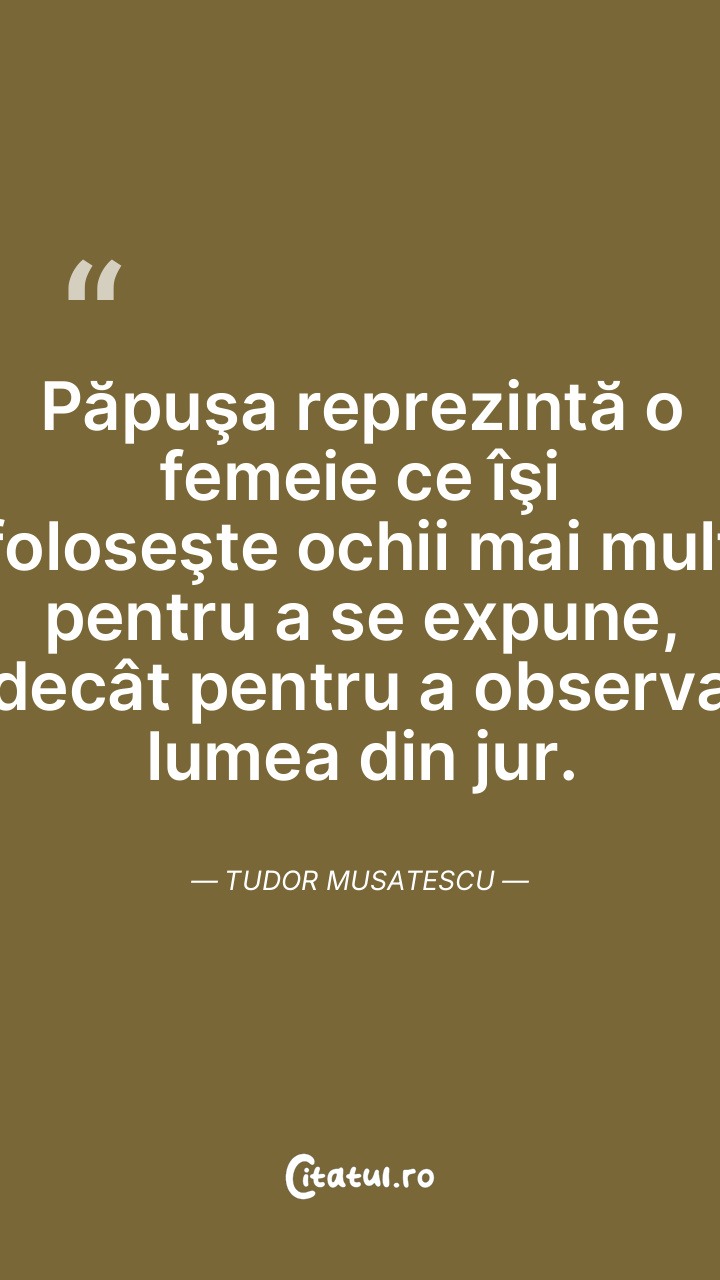 Păpuşa reprezintă o femeie ce îşi foloseşte ochii mai mult pentru a se expune, decât pentru a observa lumea din jur. Tudor Musatescu
