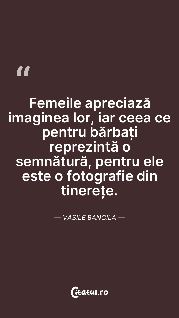 Femeile apreciază imaginea lor, iar ceea ce pentru bărbați reprezintă o semnătură, pentru ele este o fotografie din tinerețe. Vasile Bancila