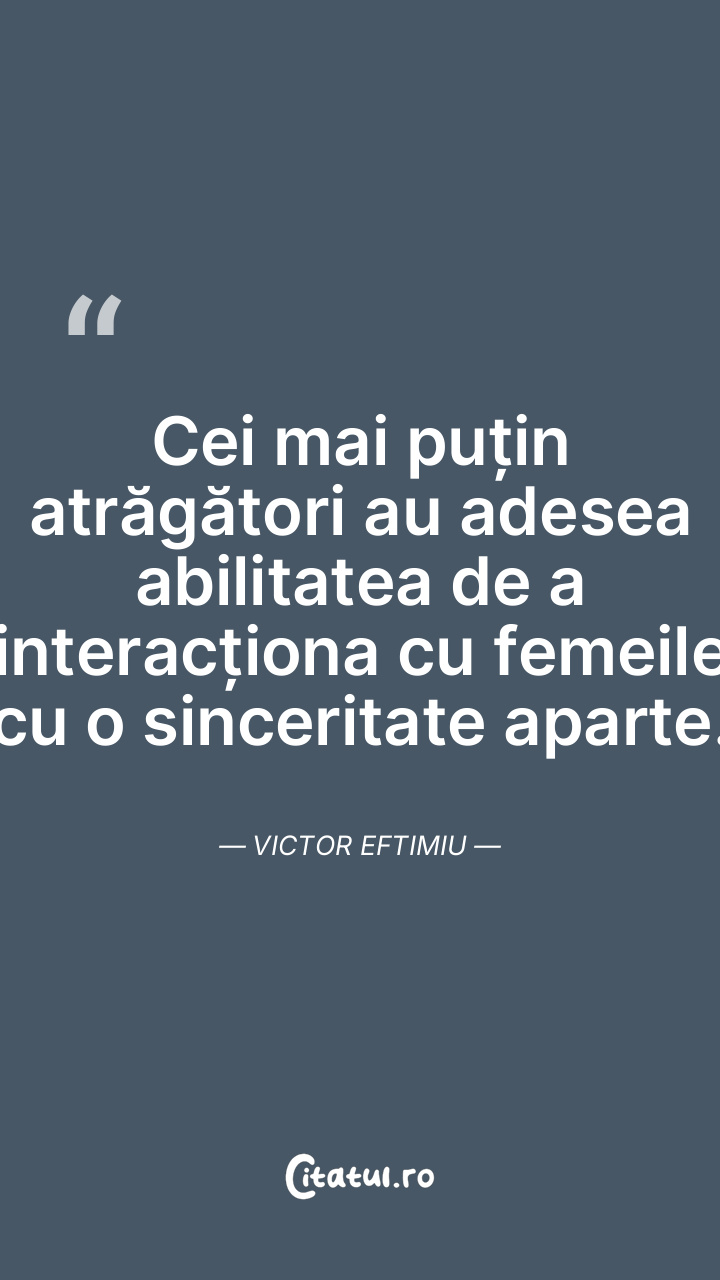 Cei mai puțin atrăgători au adesea abilitatea de a interacționa cu femeile cu o sinceritate aparte. Victor Eftimiu