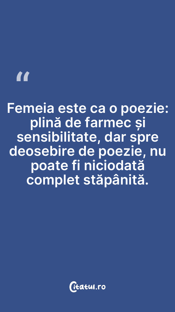 Femeia este ca o poezie: plină de farmec și sensibilitate, dar spre deosebire de poezie, nu poate fi niciodată complet stăpânită.