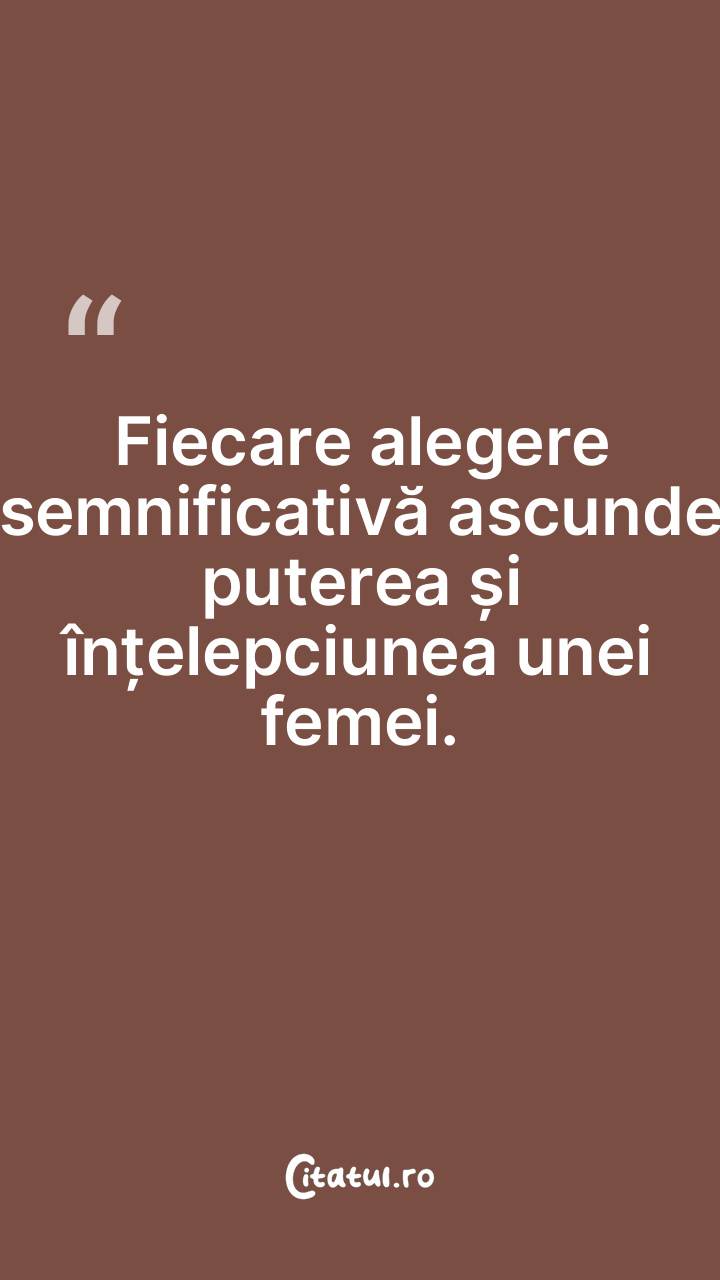 Fiecare alegere semnificativă ascunde puterea și înțelepciunea unei femei.