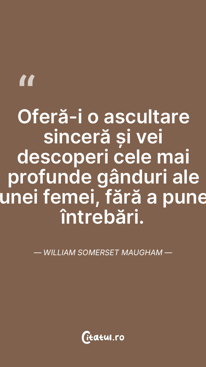 Oferă-i o ascultare sinceră și vei descoperi cele mai profunde gânduri ale unei femei, fără a pune întrebări. William Somerset Maugham