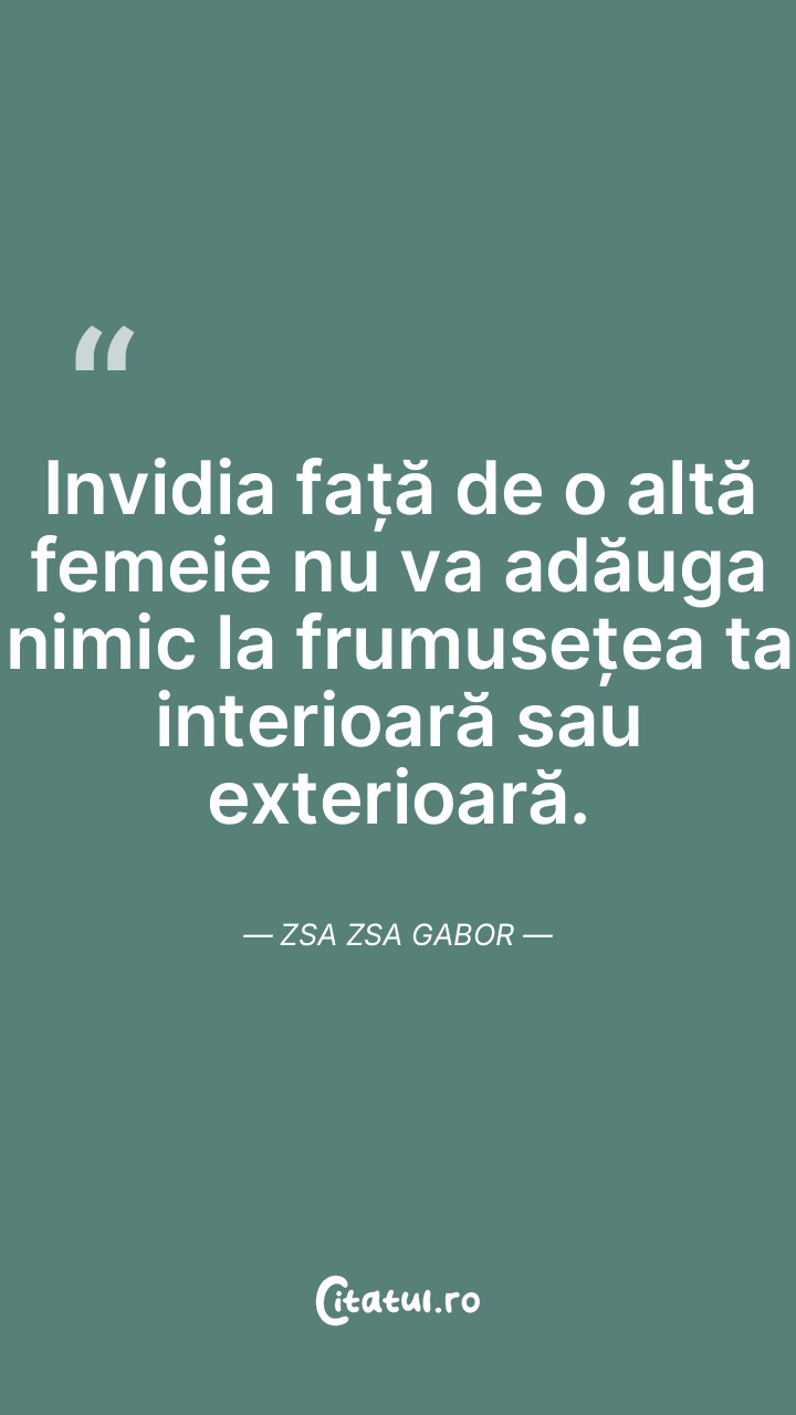 Invidia față de o altă femeie nu va adăuga nimic la frumusețea ta interioară sau exterioară. Zsa Zsa Gabor