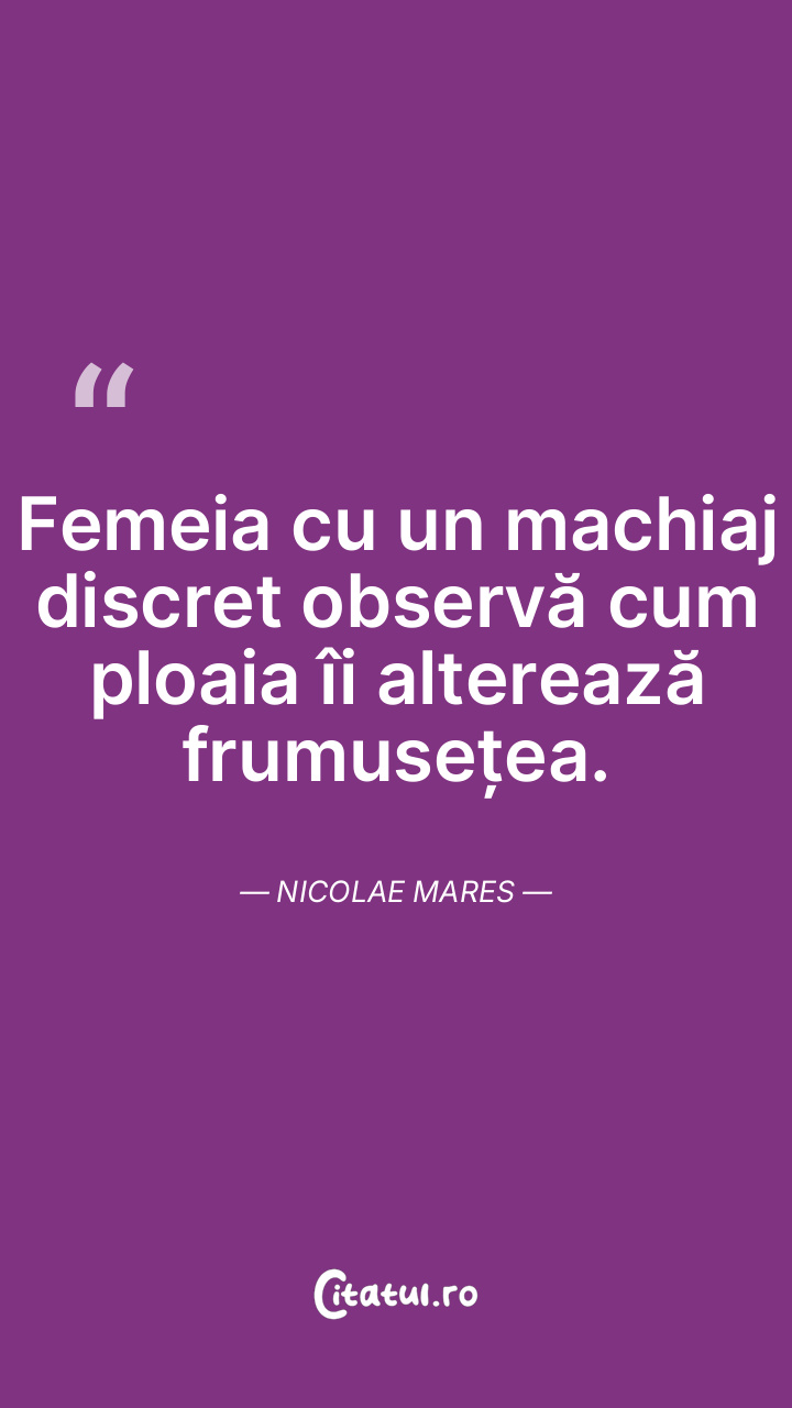 Femeia cu un machiaj discret observă cum ploaia îi alterează frumusețea. Nicolae Mares