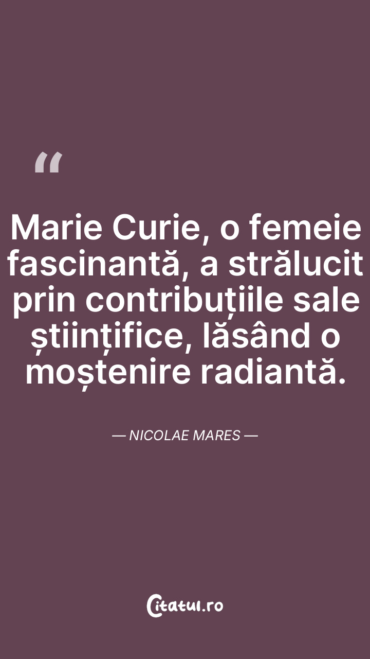 Marie Curie, o femeie fascinantă, a strălucit prin contribuțiile sale științifice, lăsând o moștenire radiantă. Nicolae Mares