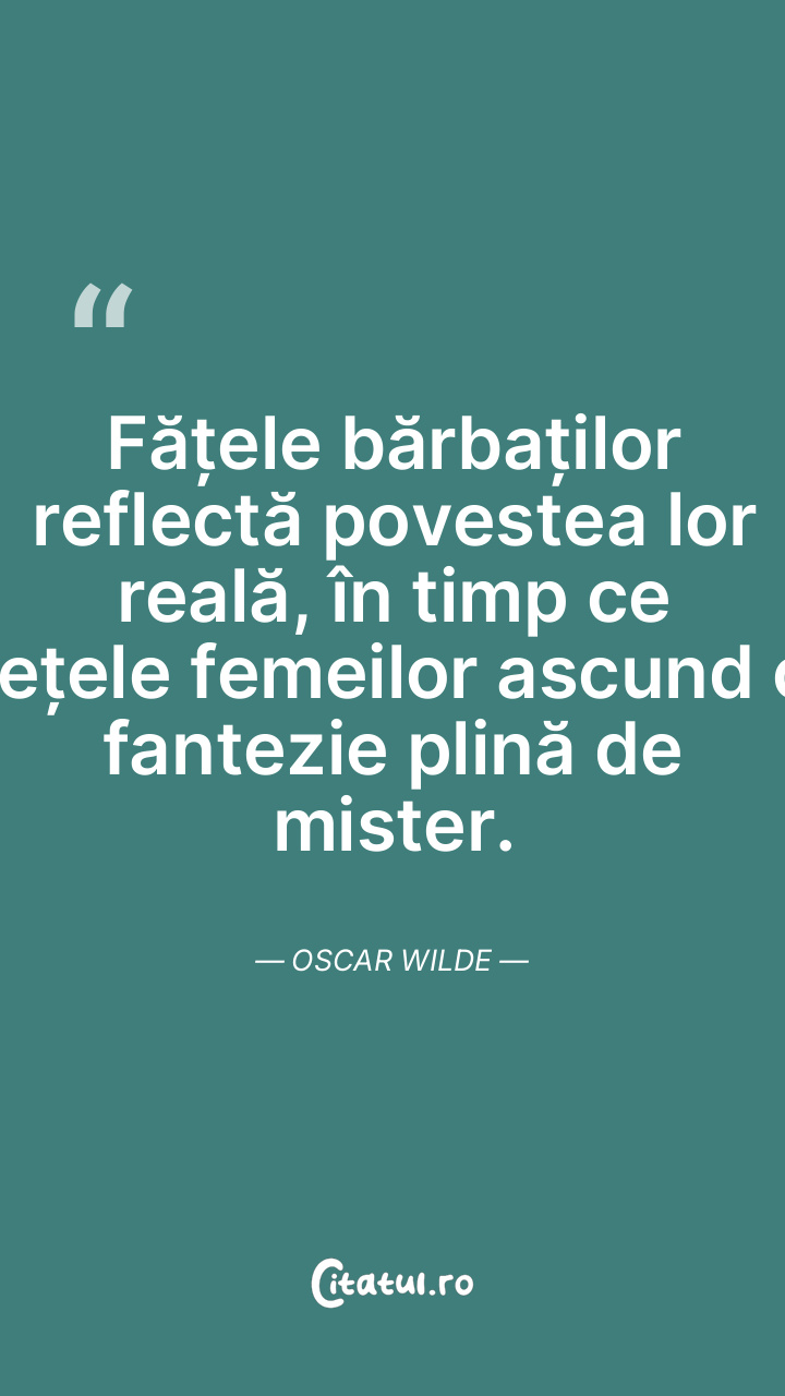 Fățele bărbaților reflectă povestea lor reală, în timp ce fețele femeilor ascund o fantezie plină de mister. Oscar Wilde