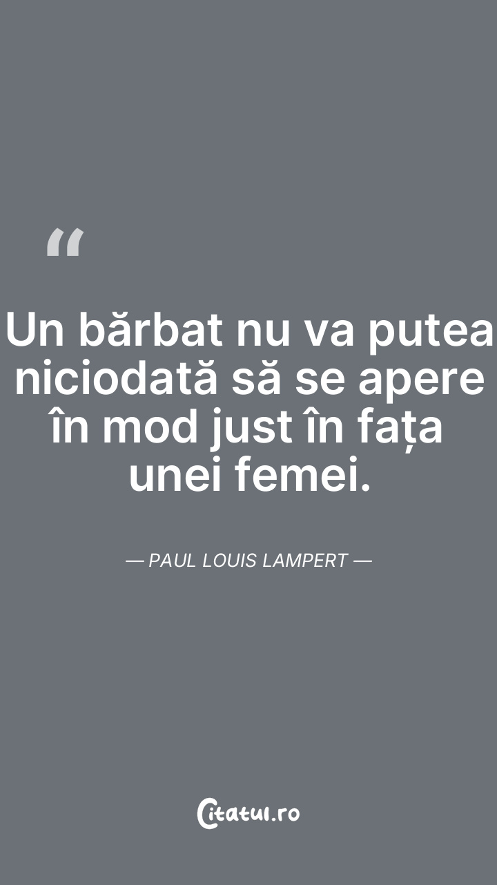 Un bărbat nu va putea niciodată să se apere în mod just în fața unei femei. Paul Louis Lampert