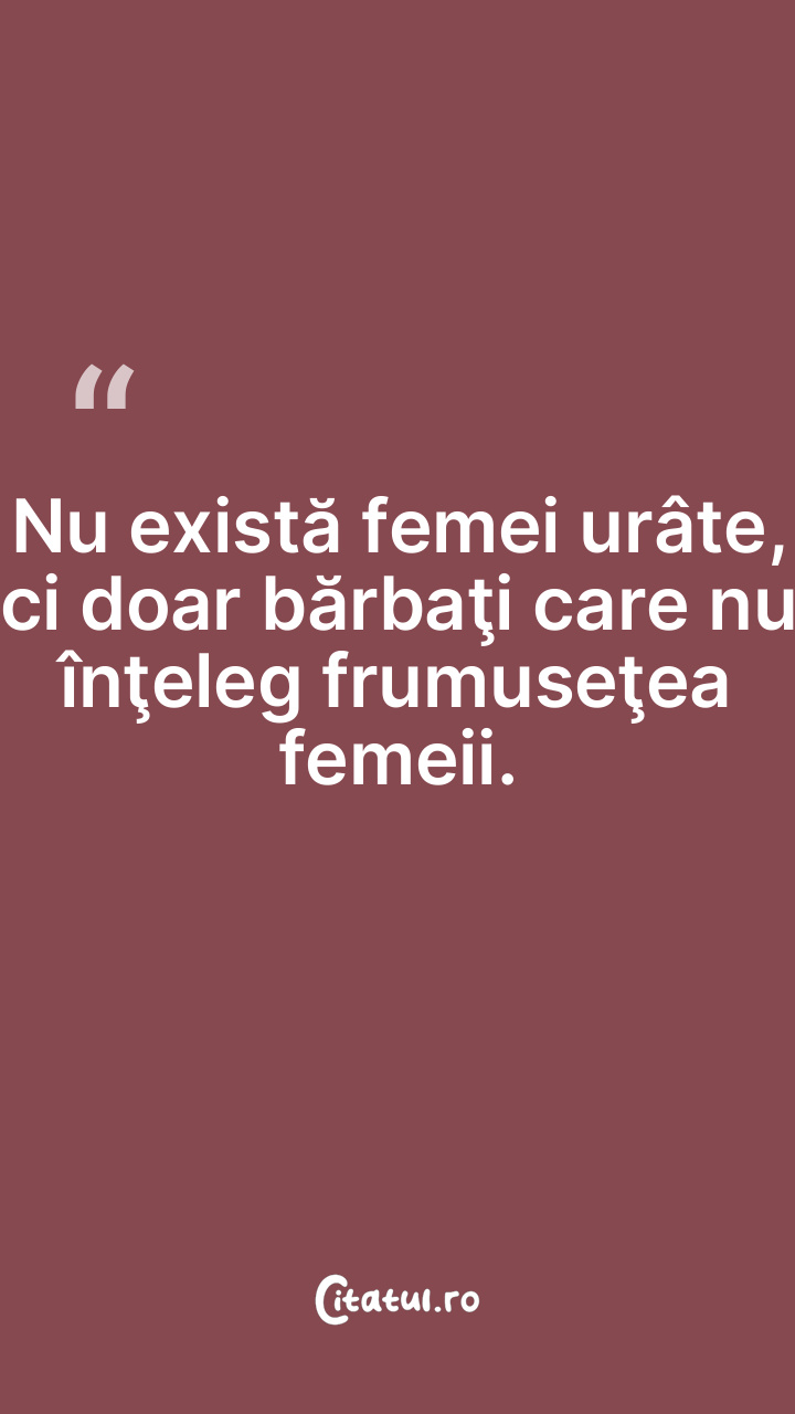 Nu există femei urâte, ci doar bărbaţi care nu înţeleg frumuseţea femeii.