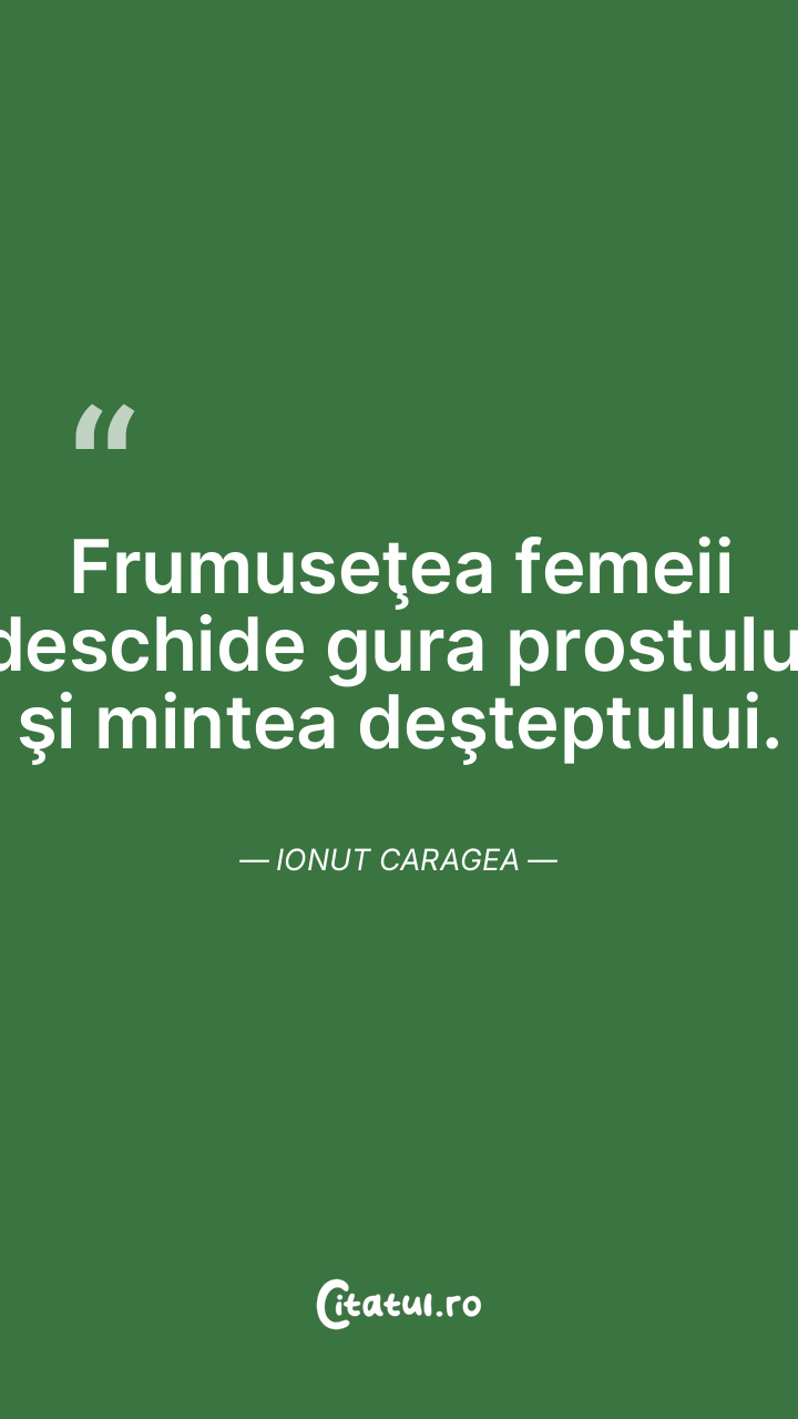 Frumuseţea femeii deschide gura prostului şi mintea deşteptului. Ionut Caragea