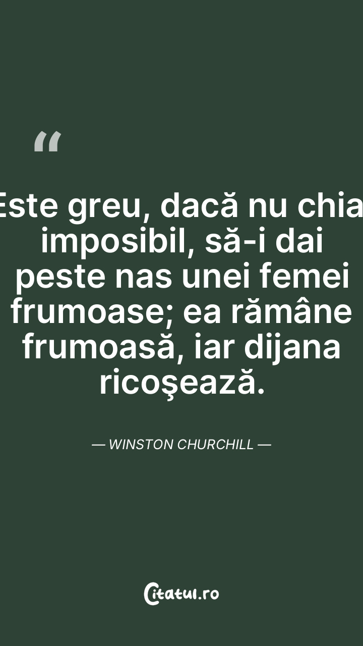 Este greu, dacă nu chiar imposibil, să-i dai peste nas unei femei frumoase; ea rămâne frumoasă, iar dijana ricoşează. Winston Churchill