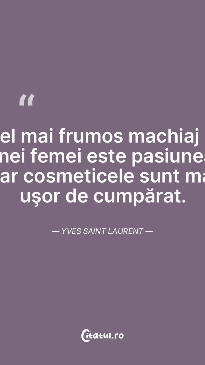 Cel mai frumos machiaj al unei femei este pasiunea, dar cosmeticele sunt mai uşor de cumpărat. Yves Saint Laurent