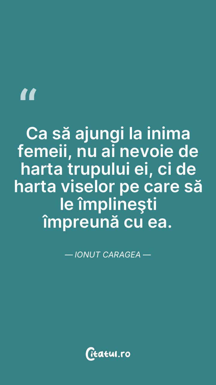 Ca să ajungi la inima femeii, nu ai nevoie de harta trupului ei, ci de harta viselor pe care să le împlineşti împreună cu ea. Ionut Caragea