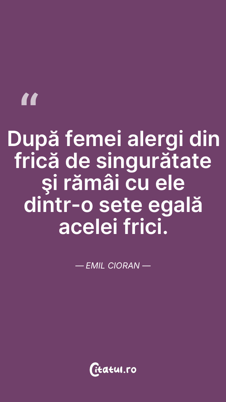 După femei alergi din frică de singurătate şi rămâi cu ele dintr-o sete egală acelei frici. Emil Cioran