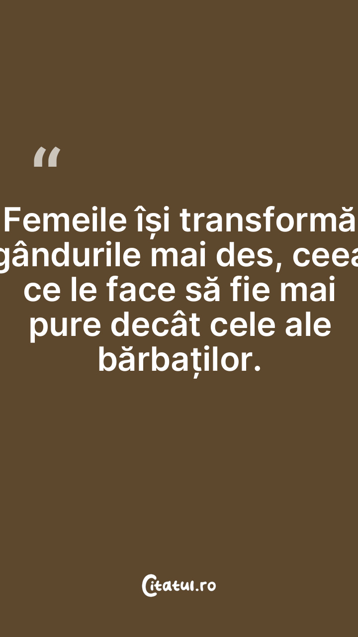 Femeile își transformă gândurile mai des, ceea ce le face să fie mai pure decât cele ale bărbaților.