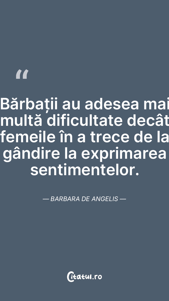 Bărbații au adesea mai multă dificultate decât femeile în a trece de la gândire la exprimarea sentimentelor. Barbara De Angelis