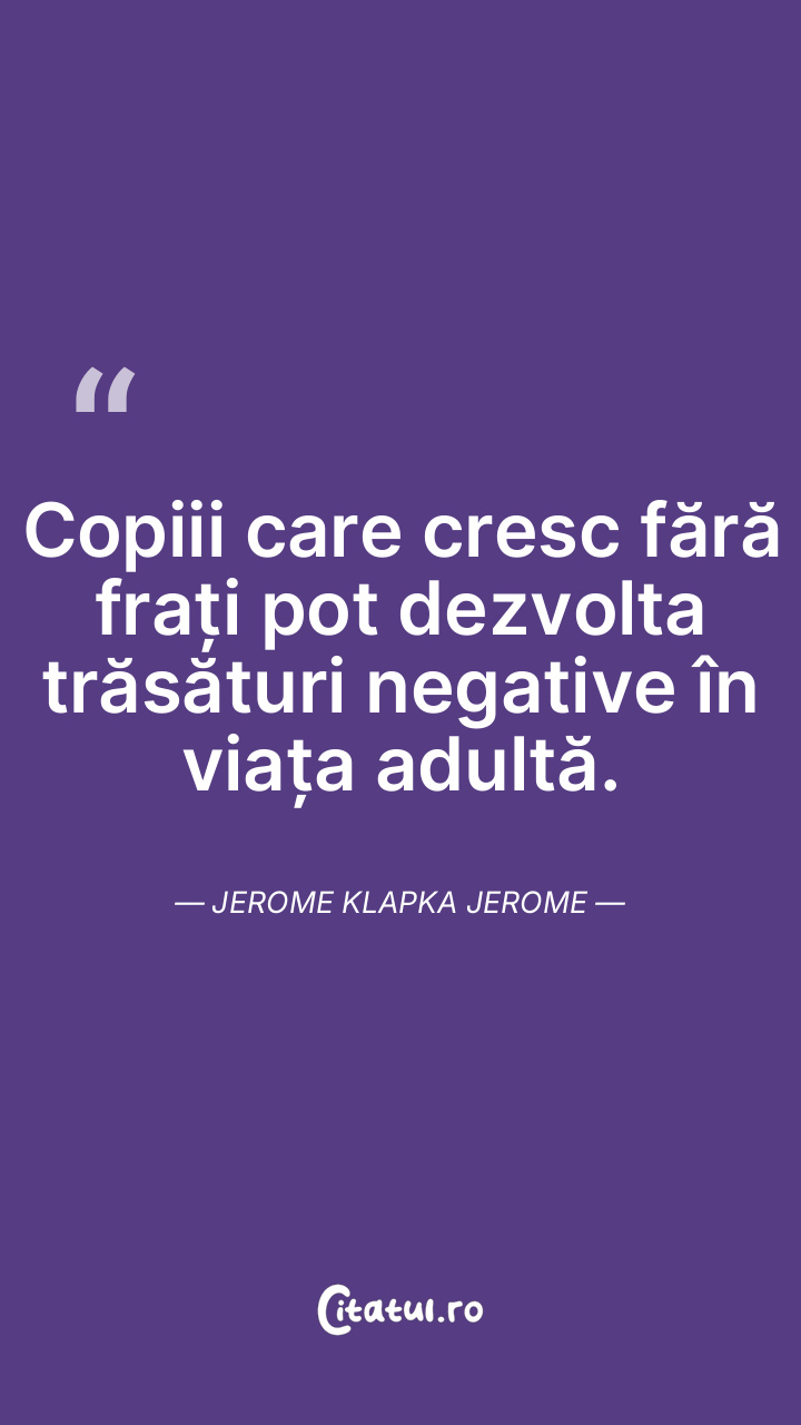 Copiii care cresc fără frați pot dezvolta trăsături negative în viața adultă. Jerome Klapka Jerome