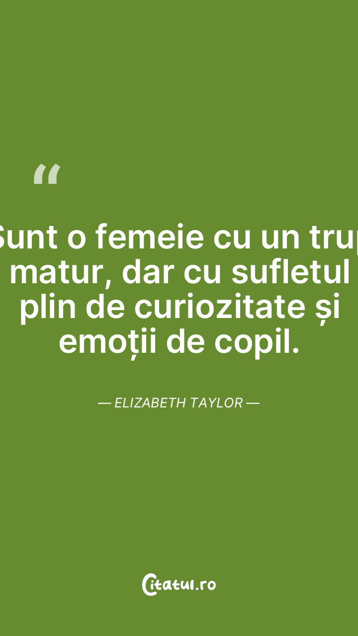 Sunt o femeie cu un trup matur, dar cu sufletul plin de curiozitate și emoții de copil. Elizabeth Taylor