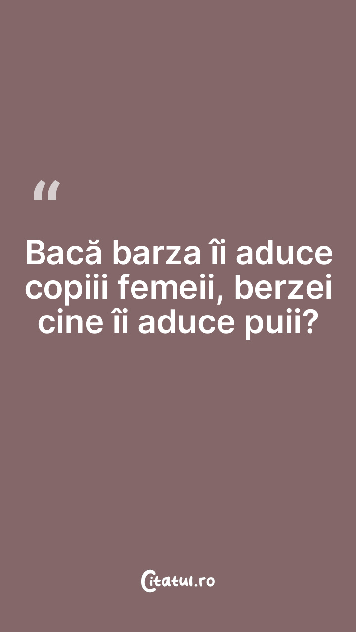Bacă barza îi aduce copiii femeii, berzei cine îi ...