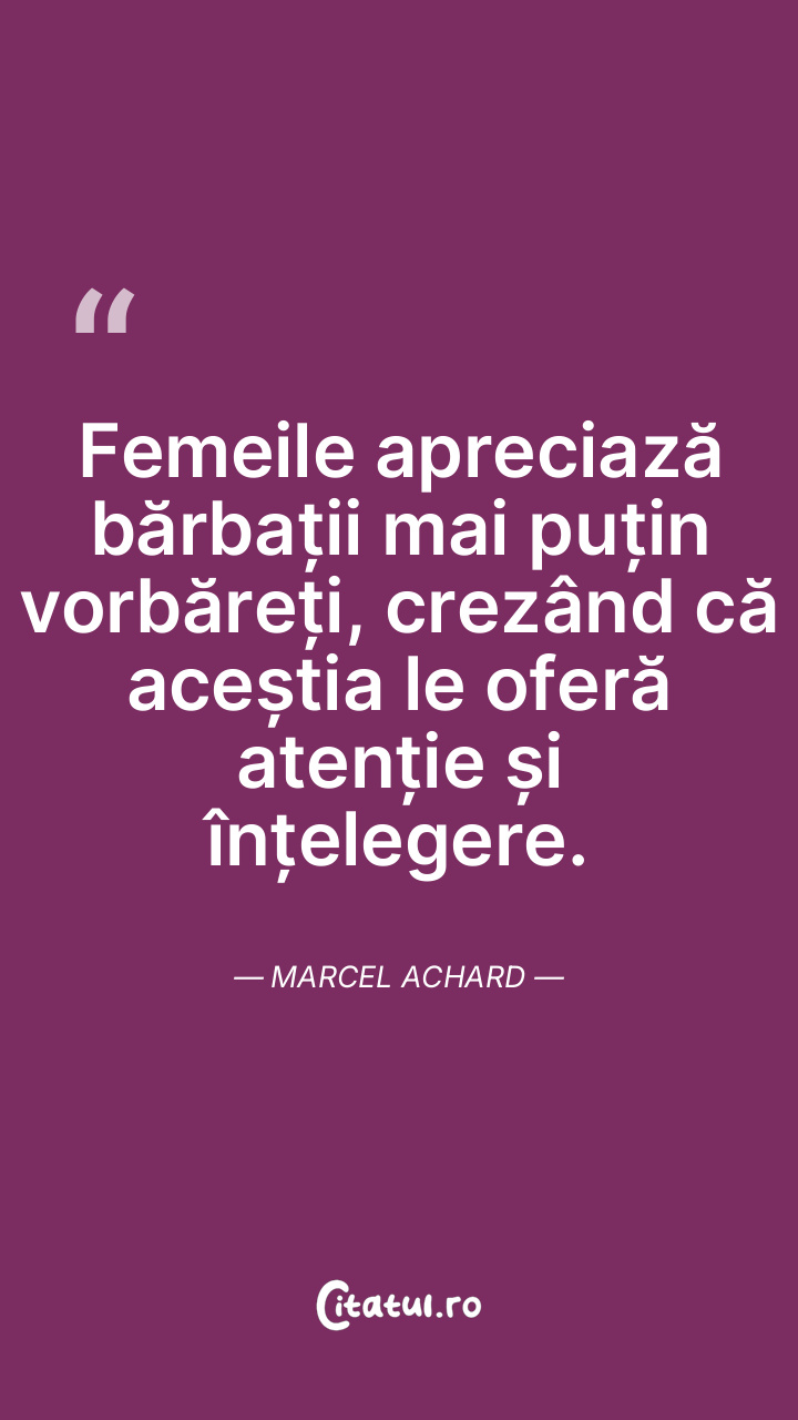 Femeile apreciază bărbații mai puțin vorbăreți, crezând că aceștia le oferă atenție și înțelegere. Marcel Achard