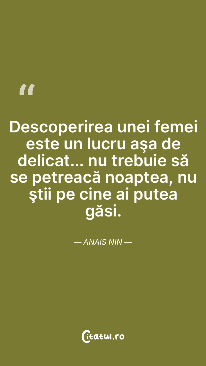 Descoperirea unei femei este un lucru aşa de delicat... nu trebuie să se petreacă noaptea, nu ştii pe cine ai putea găsi. Anais Nin