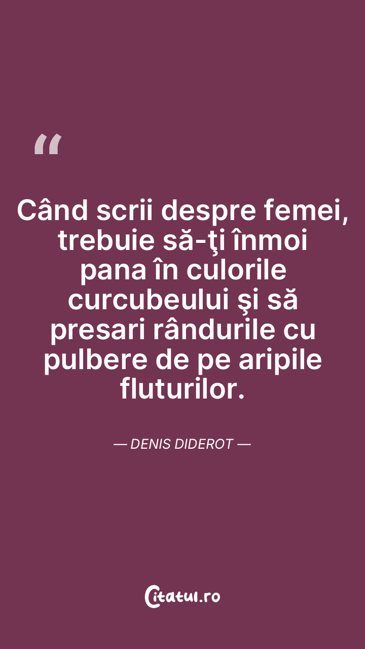 Când scrii despre femei, trebuie să-ţi înmoi pana în culorile curcubeului şi să presari rândurile cu pulbere de pe aripile fluturilor. Denis Diderot