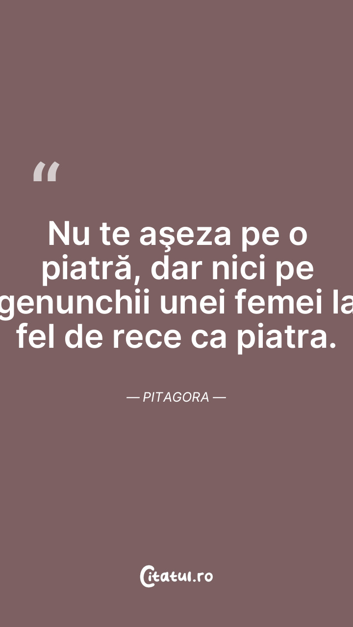 Nu te aşeza pe o piatră, dar nici pe genunchii unei femei la fel de rece ca piatra. Pitagora