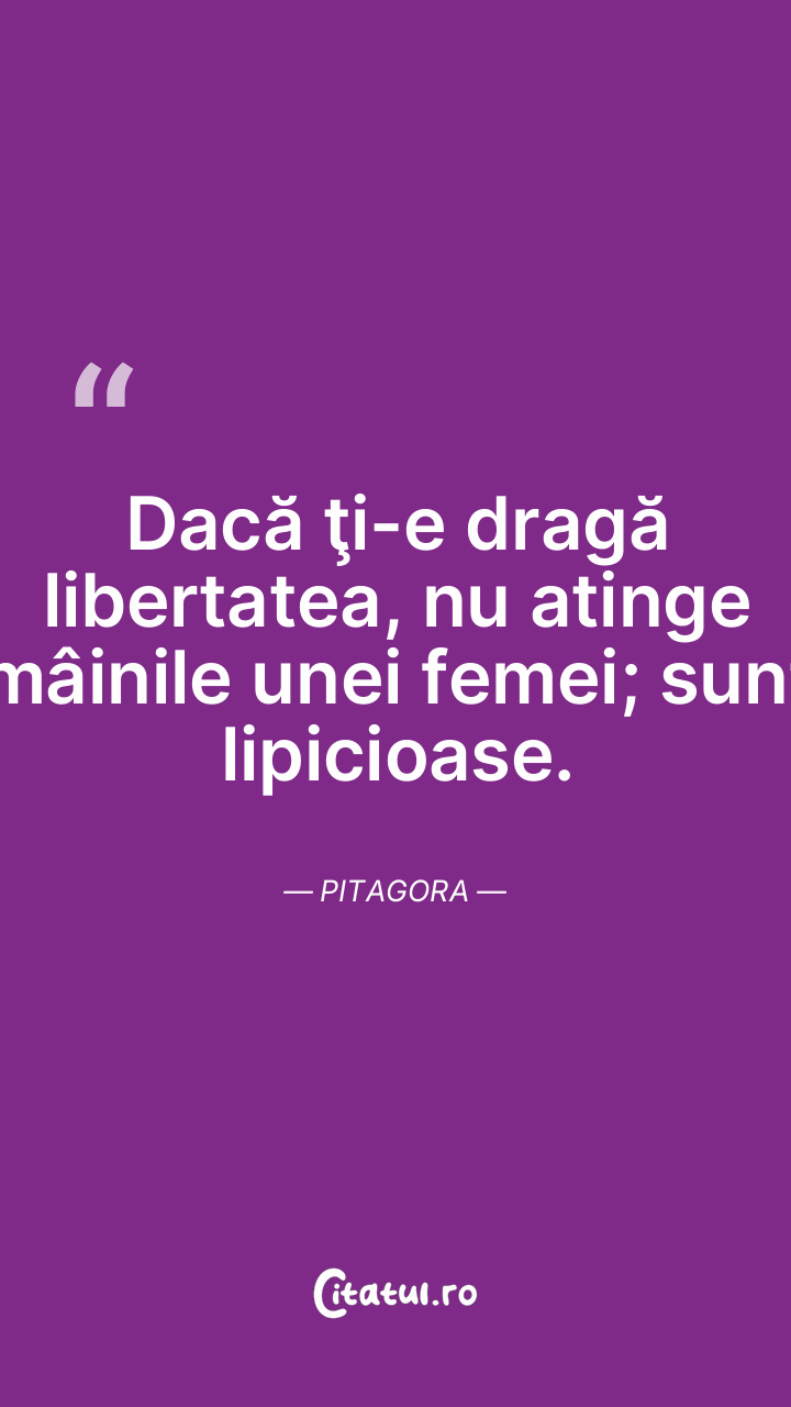 Dacă ţi-e dragă libertatea, nu atinge mâinile unei femei; sunt lipicioase. Pitagora