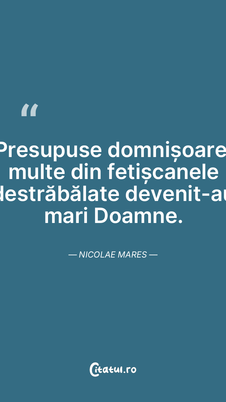 Presupuse domnișoare, multe din fetișcanele destrăbălate devenit-au mari Doamne. Nicolae Mares