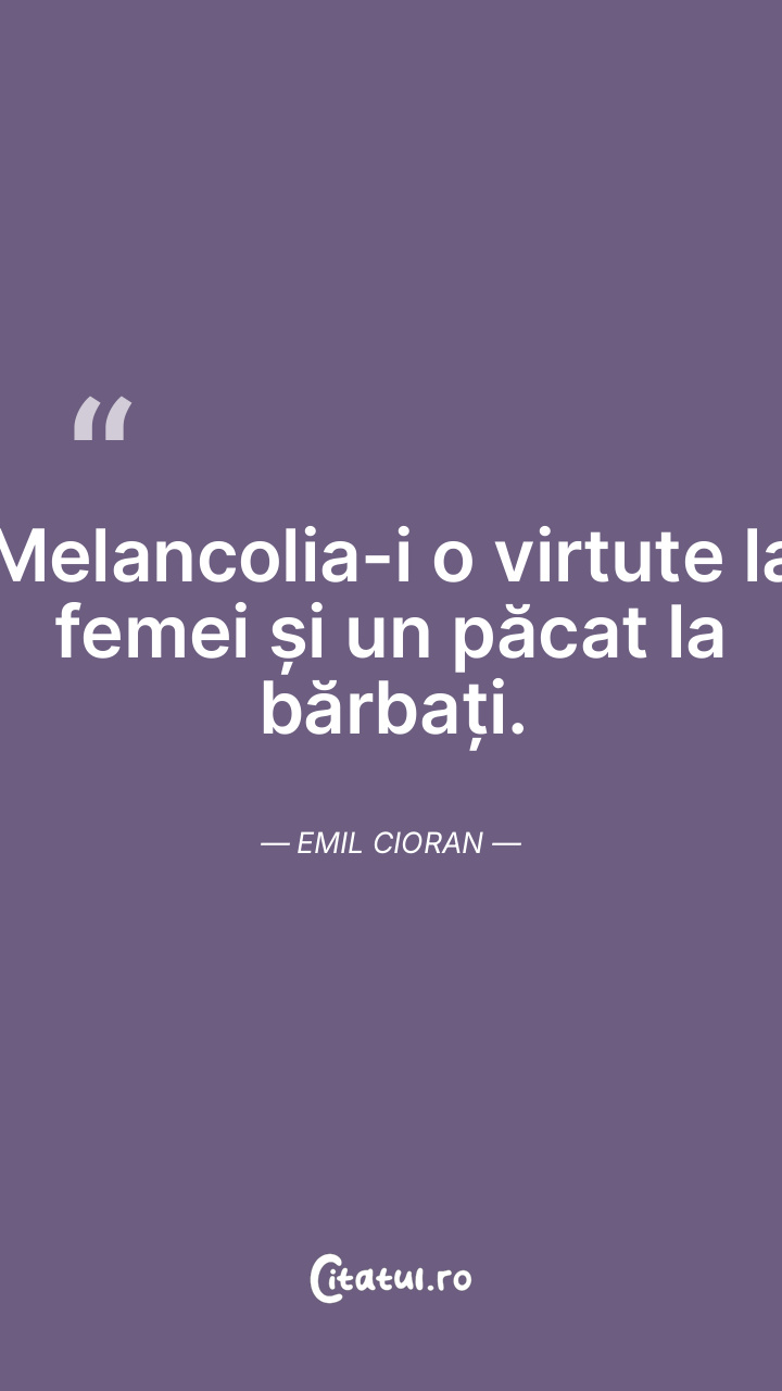 Melancolia-i o virtute la femei și un păcat la bărbați. Emil Cioran