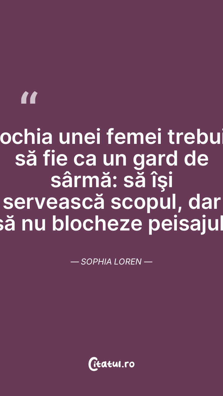 Rochia unei femei trebuie să fie ca un gard de sârmă: să îşi servească scopul, dar să nu blocheze peisajul. Sophia Loren