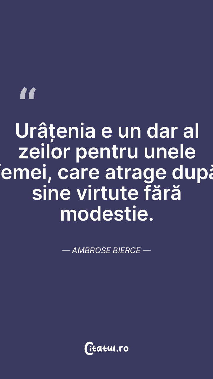 Urâțenia e un dar al zeilor pentru unele femei, care atrage după sine virtute fără modestie. Ambrose Bierce