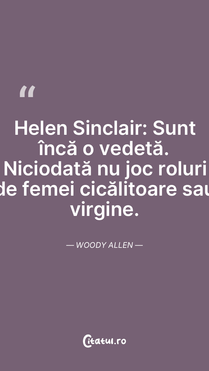 Helen Sinclair: Sunt încă o vedetă. Niciodată nu joc roluri de femei cicălitoare sau virgine. Woody Allen